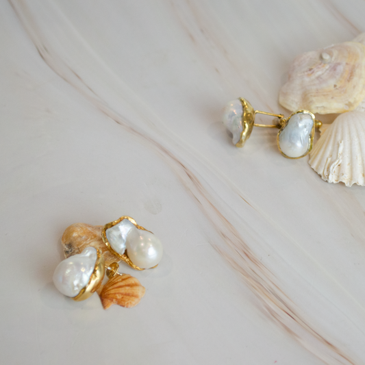 Golden Pearl Jewelry Set | Earrings and Necklace