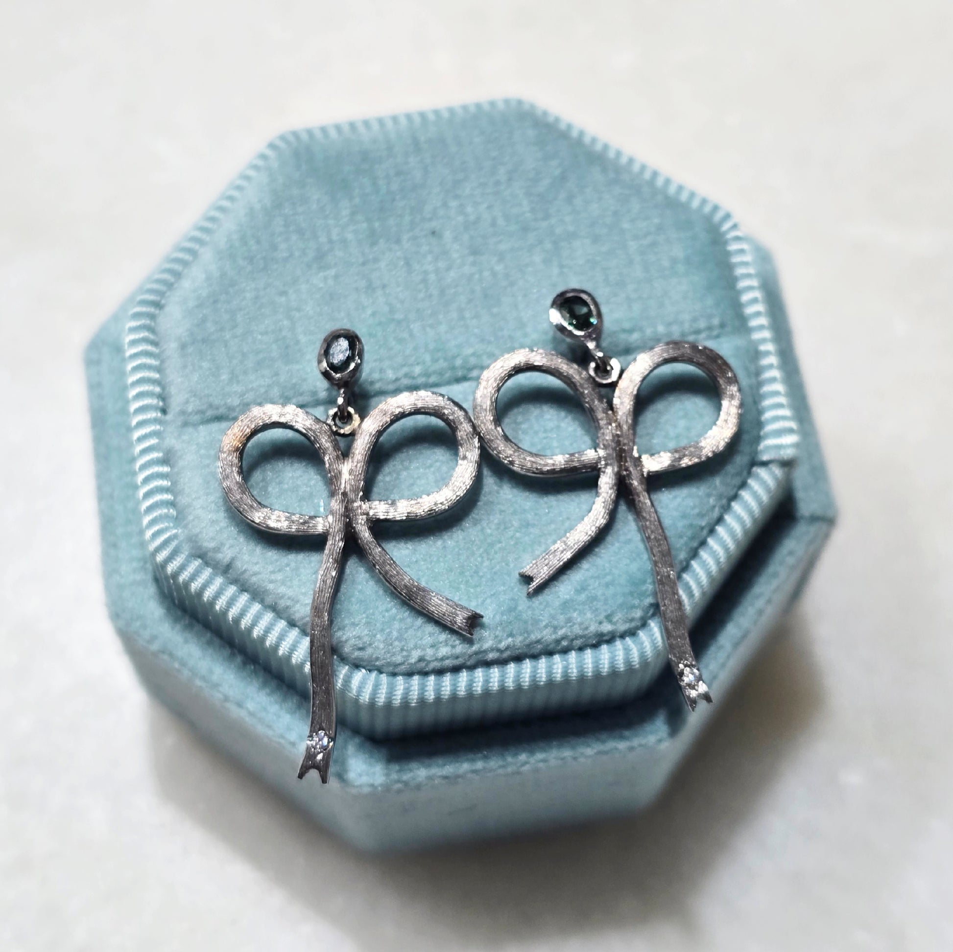Brincos Renda de Seda com Diamantes Verdes em Ouro Branco 18k